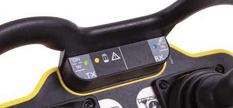 Die LEDs an dem Sender zeigen den Betriebszustand, Akku-Leermeldung und Störmeldungen der Funkfernsteuerung an. Weitere LEDs können als Rückmeldung, um Zustände der Maschine anzuzeigen, vorgesehen werden.