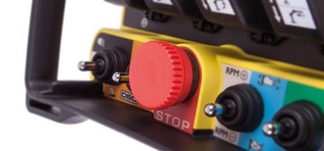 Der pilzförmigen Not-Halt-Schalter gewährleistet einen maximalen Grad an Sicherheit, gemäß den europäischen und internationalen Normen. Obwohl der Not-Halt Schalter optimal gegen versehentliche Stöße geschützt ist, ist er für den Bediener leicht erreichbar und nimmt eine Vorrangstellung ein.