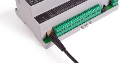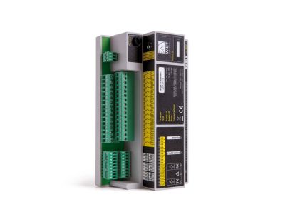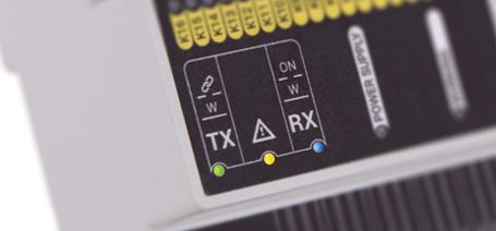 Der Sender M880 MODIN ist für die Montage auf Hutschiene in einem Schaltschrank entwickelt worden. Über die steckbaren Anschlussklemmen können digitale, analoge und serielle Signale verarbeitet werden.