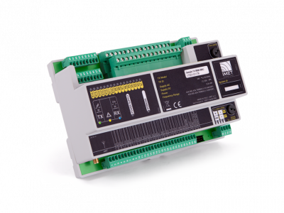 Der Sender M880 MODIN ist für die Montage auf Hutschiene in einem Schaltschrank entwickelt worden. Über die steckbaren Anschlussklemmen können digitale, analoge und serielle Signale verarbeitet werden.