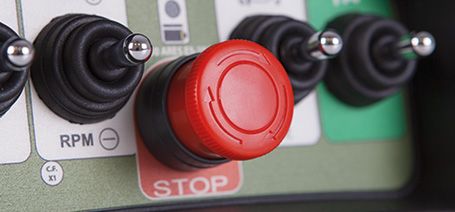 Der pilzförmigen Not-Halt-Schalter gewährleistet einen maximalen Grad an Sicherheit, gemäß den europäischen und internationalen Normen. Obwohl der Not-Halt Schalter optimal gegen versehentliche Stöße geschützt ist, ist er für den Bediener leicht erreichbar und nimmt eine Vorrangstellung ein.
